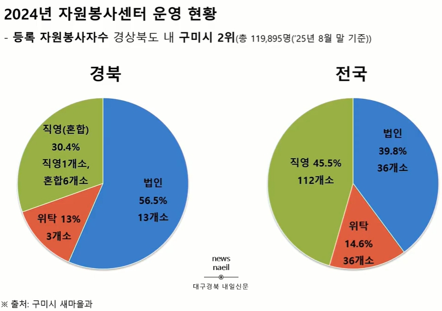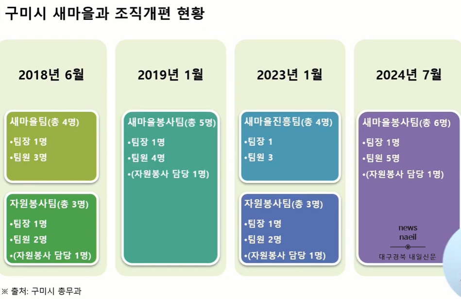 김민성 구미시의회 의원은 △자원봉사센터 운영체계 재검토 △자원봉사 실적의 질적 관리 및 인센티브 제도 도입 △인력·예산 확대를 통한 새마을운동과 자원봉사 관련 조직 기능 재정비가 필요하다고 강조했다.