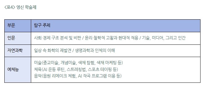 본교의 우수한 영어관련 프로그램으로 인해 인문계열 중심적인 학교로 인식되는 경우가 있으나, 사실 경쟁력 있는 다양한 프로그램과 입시지도로 어느 학교보다도 자연계열 학생들을 잘 교육하고 있으며, 이를 입시결과로 충분히 입증하고 있습니다. 특히 본교는 2022년부터 컴퓨터 SW언어 교육과 AI 인공지능 교육에 앞장서고 있으며, 이러한 노력을 인정받아 2024년 인공지능 선도학교로 선정되는 쾌거를 이뤄냈습니다. 또한 학술제, 좋은 학교(마을) 만들기 공모전, 국어과 한글날 행사, 수학과 파이데이, 영어과 주제발표, AI 해커톤 대회 등 교내 행사를 통해 학생들이 경쟁력 있는 생활기록부를 만들어낼 수 있는데 주력하고 있습니다. 이러한 학교와 학생의 노력이 현재 대입 학생부 종합전형에서 빛을 발하고 있습니다.