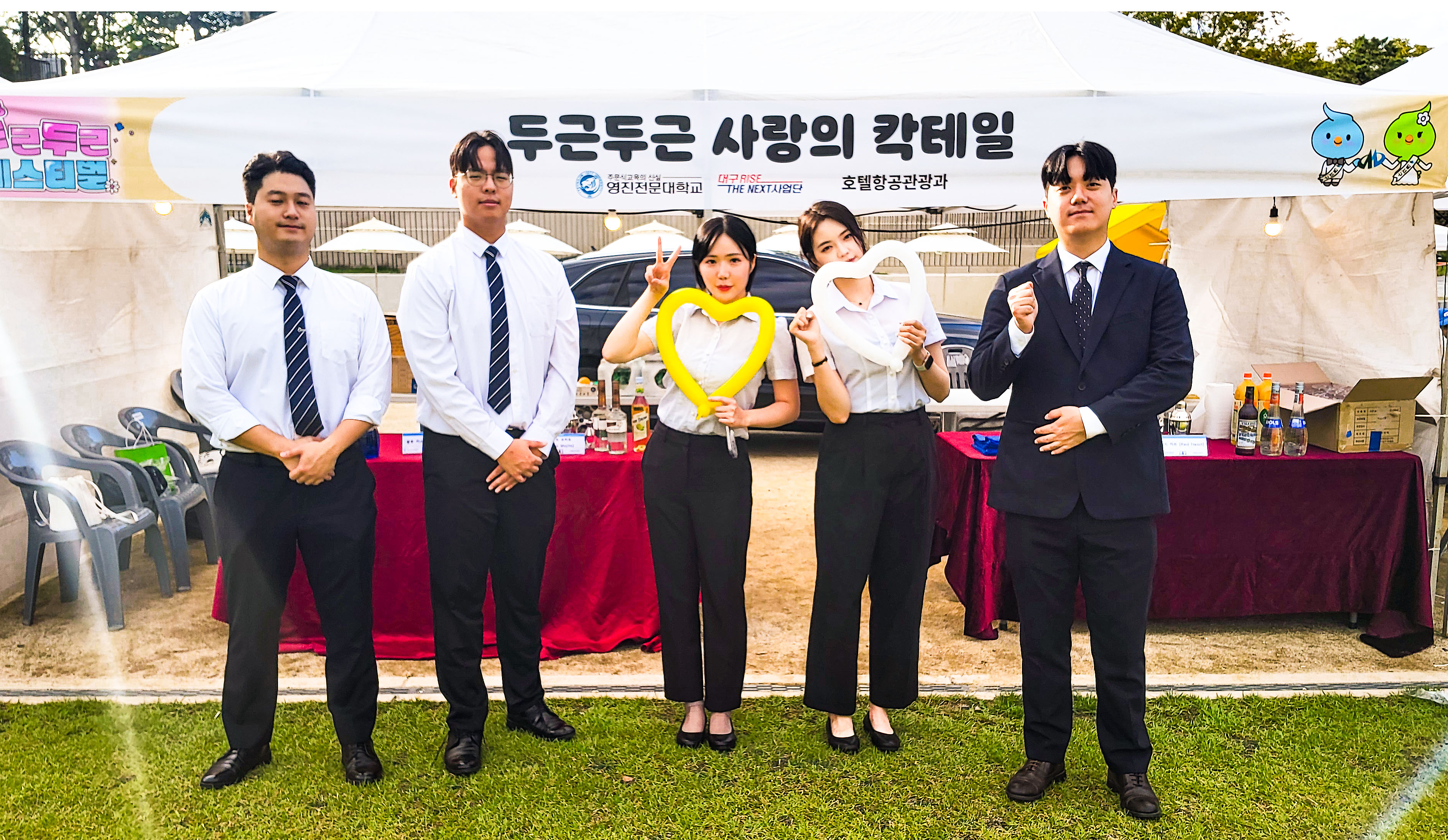 영진전문대학교(총장 최재영) 호텔항공관광과 지난달 말 대구 달서구 두류공원 2.28자유광장에서 열린 ‘두근두근 페스티벌’에서 특별하고 전문성 있는 칵테일 부스를 운영해 시민들의 눈길을 사로잡았다.