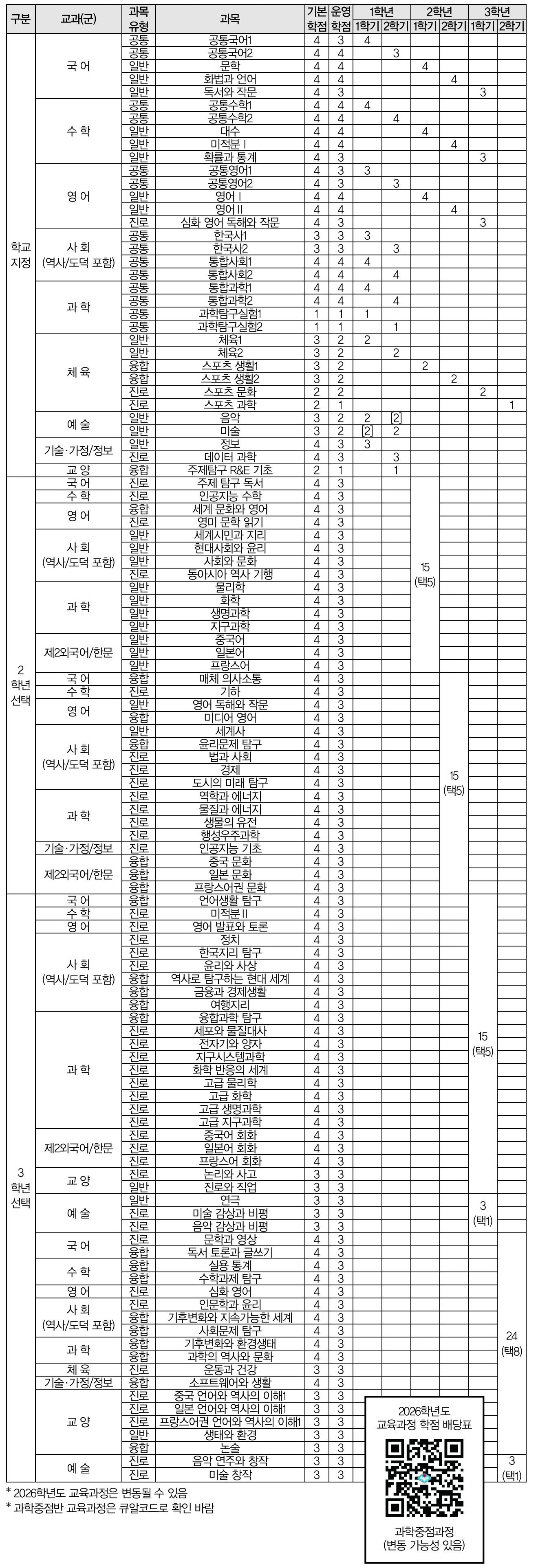 ●2026학년도 반포고 교육과정 일반과정(안)