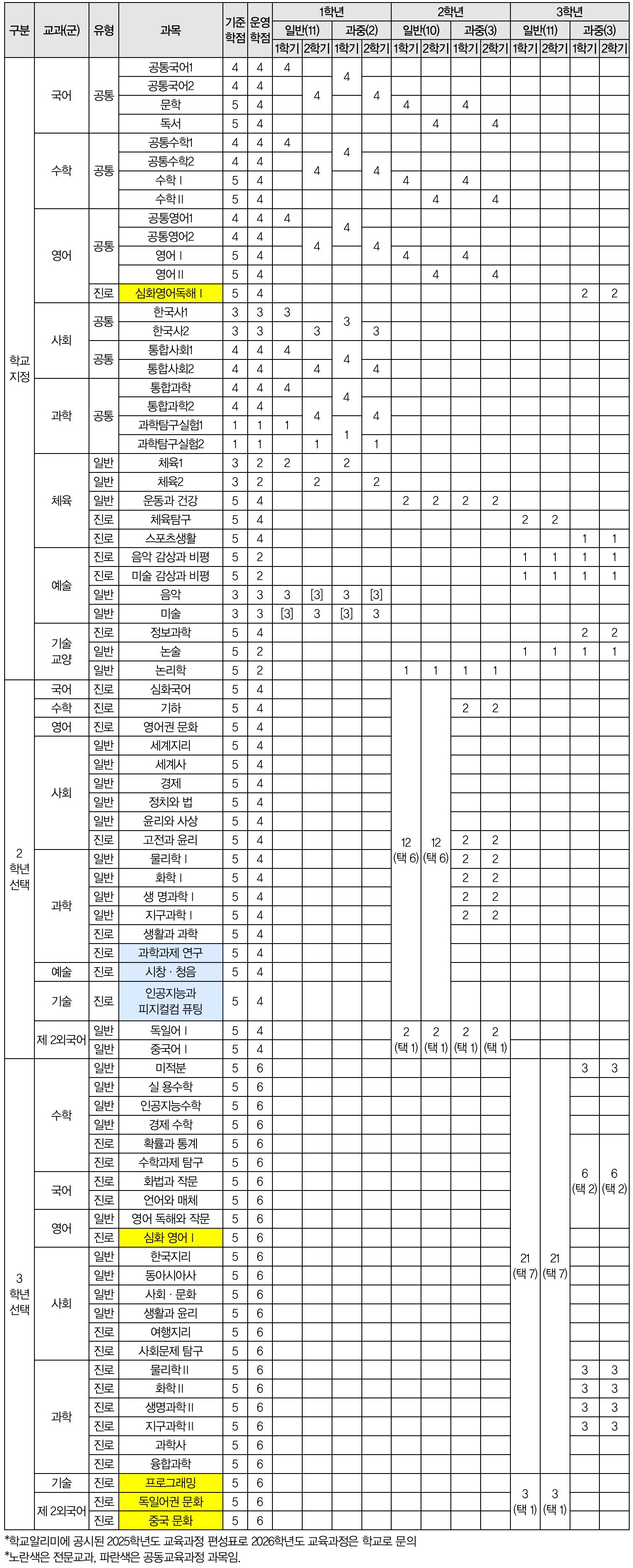 학생 개개인의 수요를 반영한 선택 교육과정을 운영하고, 학생 개개인 맞춤형 선택교육과정으로 실질적 과목 선택권 확대했다. 인근 영동고와 청담고와 함께 공유 캠퍼스를 운영 ‘과학과제연구’ ‘인공지능과 피지컬컴퓨팅’, ‘시청·청음’ 과목을 개설했다. 또 공유캠퍼스별로 개설된 특색 프로그램 참여도 가능하다.