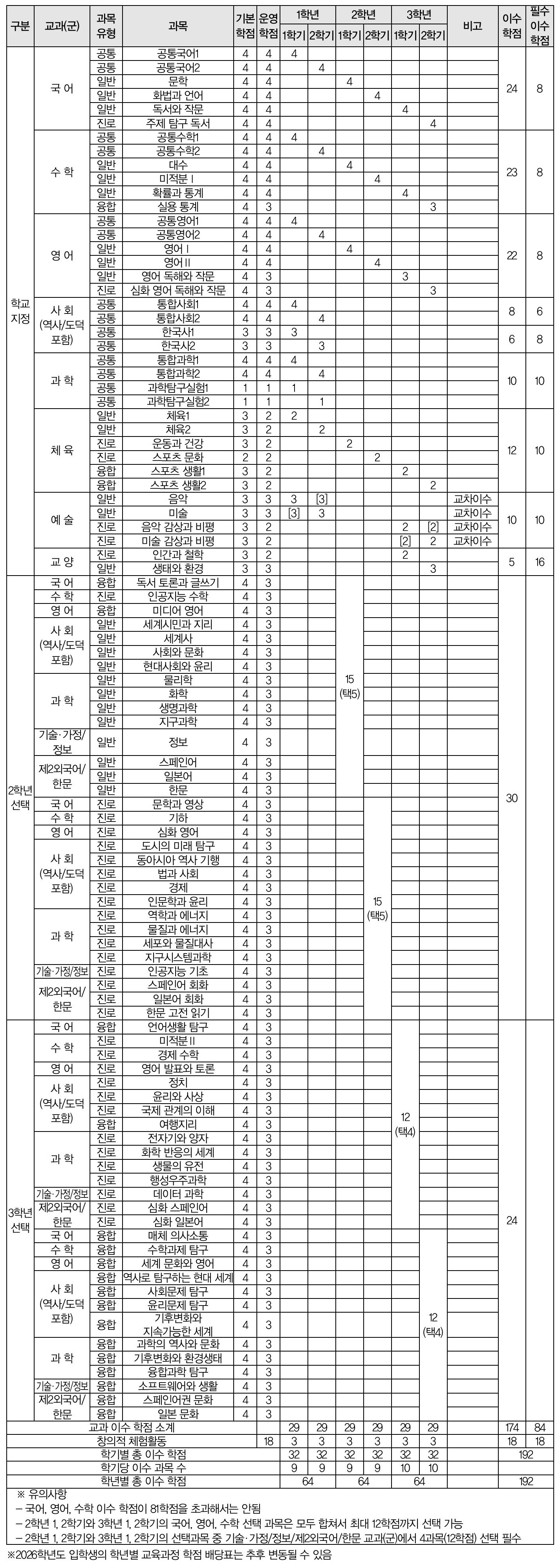 ●단국대학교사범대학부속고등학교 교육과정 학점 배당표(안) _ 2026학년도 입학생 기준