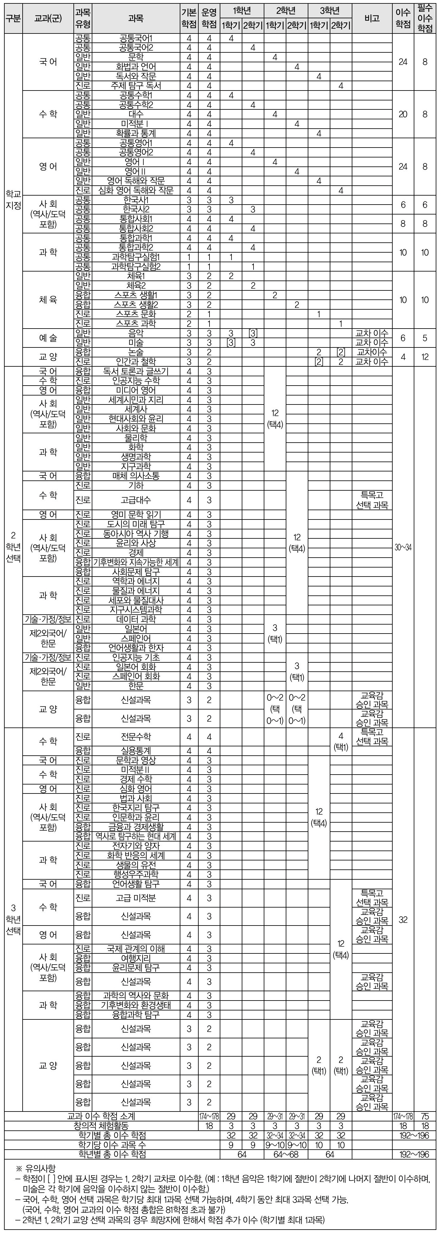 ●중동고 교육과정 학점배당표 (2026학년도 입학생 기준)