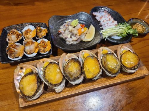 대표 메뉴는 세트 메뉴와 해물뚝배기인데, ‘해물뚝배기’(15,000원)에는 낙지 한 마리가 통으로 들어가고, 피꼬막, 바지락, 홍합 등이 듬뿍 들어간 깔끔하면서 칼칼한 국물이 일품이다. 해물뚝배기에 전복이 추가된 전복뚝배기(20,000원)도 있다. 세트 메뉴는 1~2인 메뉴인 반상 세트(65,000원)와 3~4인 메뉴인 한상 세트(123,000원)가 있는데, 해물뚝배기, 전복구이, 문어숙회, 피꼬막, 타코와사비 등으로 구성돼 ‘비진도’의 신선한 해물요리를 다채롭고 풍성하게 맛볼 수 있다.