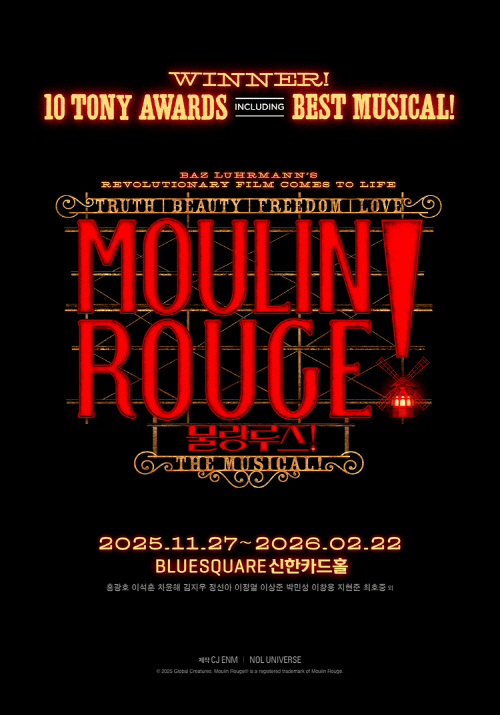 <물랑루즈!>는 바즈 루어만 감독이 연출하고 니콜 키드먼이 주연으로 나온 2001년 동명 영화가 원작으로, CJ ENM이 뮤지컬 공동 제작에 참여해 2019년 브로드웨이에서 첫선을 보였으며, 제74회 토니어워즈 최우수 작품상을 포함해 글로벌 뮤지컬 어워즈 36관왕을 수상한 작품이다. 국내에서는 2022년 초연한 뒤 3년 만에 다시 무대에 올라 기대를 모으고 있다.