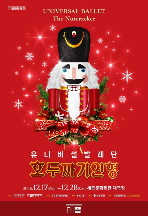 크리스마스 시즌 대표 공연으로 자리잡은 유니버설발레단의 <호두까기인형>이 12월 17일부터 28일까지 세종문화회관 대극장에서 공연된다. 올해로 5년째 세종문화회관과 공동 주최로 무대에 오르는 유니버설발레단의 <호두까기 인형>은 연말을 대표하는 클래식 공연으로 꾸준한 사랑을 받고 있다. <호두까기인형>은 발레 역사상 가장 위대한 명콤비 차이콥스키와 마리우스 프티파가 탄생시킨 고전발레의 대표작으로 <백조의 호수>, <잠자는 숲속의 미녀>와 더불어 ‘차이콥스키 3대 명작’으로 불린다. 1892년 러시아 상트페테르부르크 마린스키극장에서 초연된 이 작품은 133년이 지난 오늘날까지도 크리스마스를 대표하는 발레로 전 세계 관객의 사랑을 받고 있다. 차이콥스키가 작곡한 아름다운 선율 위에 화려한 무대의상, 수준 높은 춤, 그리고 마법 같은 사랑 이야기가 어우러져 클라라와 호두까기 왕자의 환상적인 모험 이야기를 그렸다.