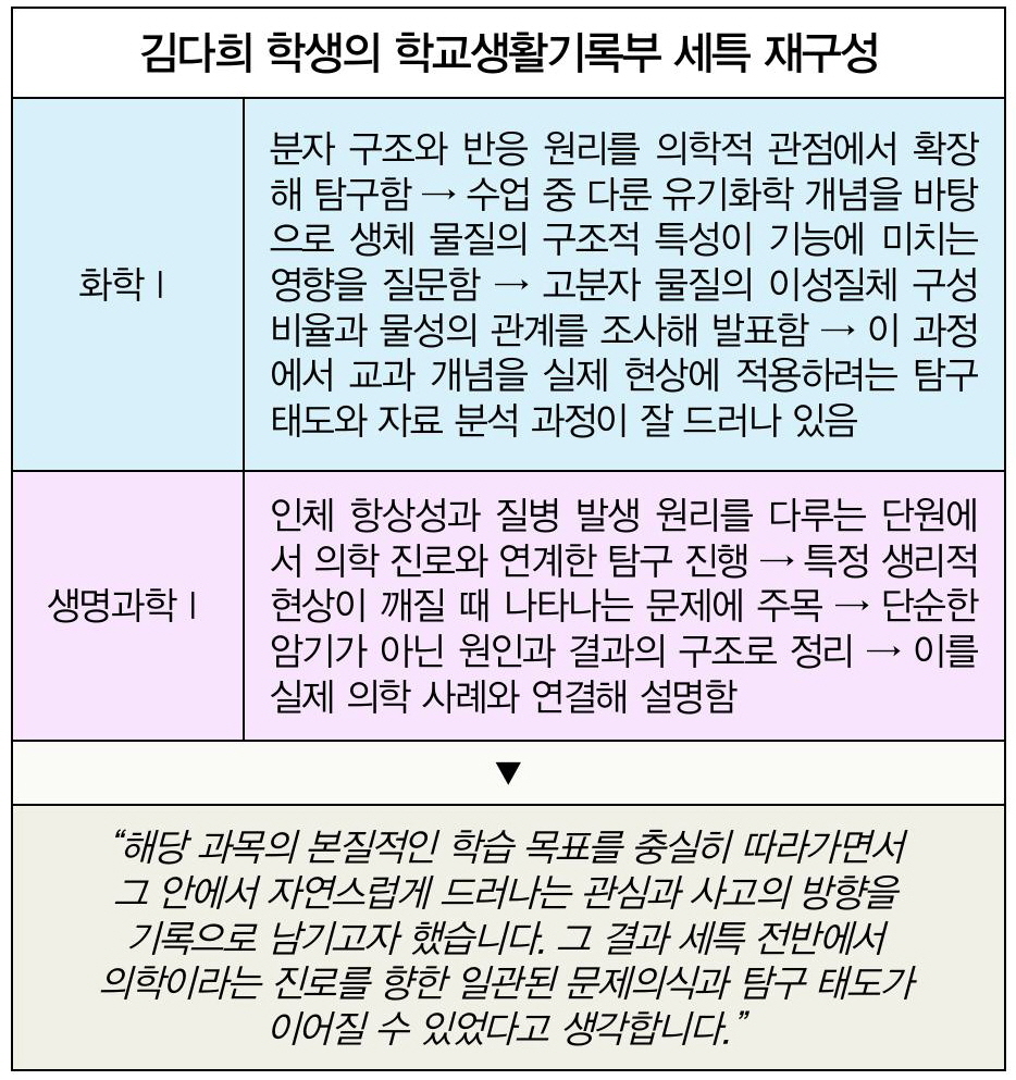 은광의 모든 활동이 곧 입시 경쟁력, 의학 분야 진로 역량 돋보이는 ‘김다희 표’ 학생부