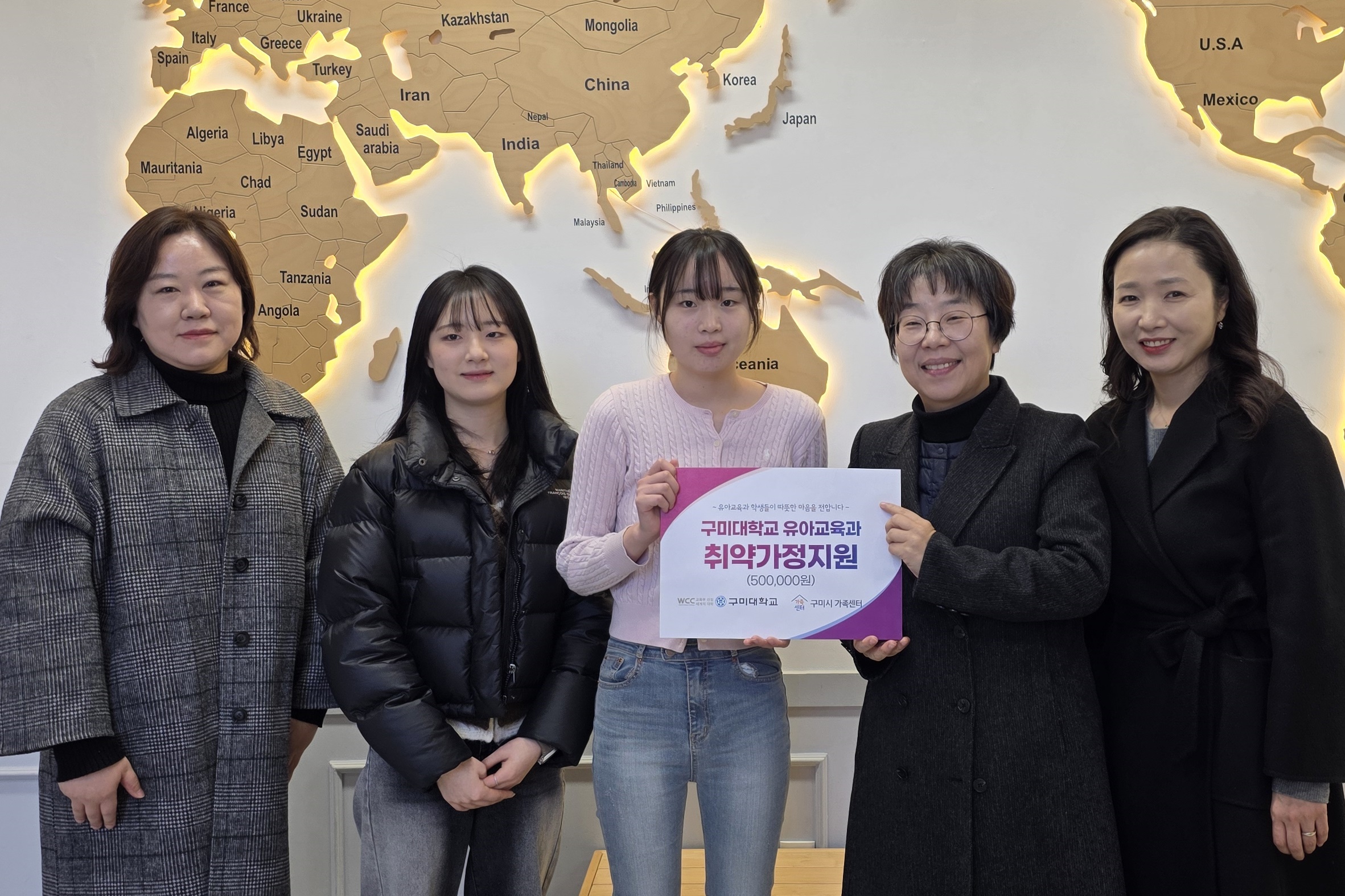 경북 구미대학교(총장 이승환) 유아교육과는 대학 학과 행사에서 마련한 기부금을 구미시가족센터에 전달해 따뜻한 나눔을 실천했다.