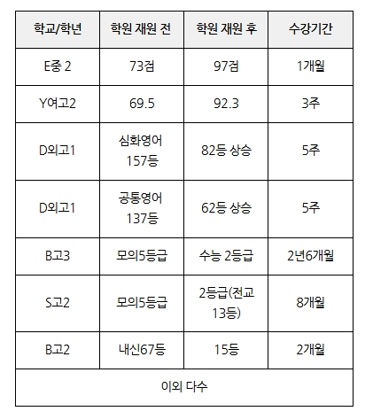 독보적인 성적 향상, 강사의 꼼꼼함과 학생의 꾸준함의 결과