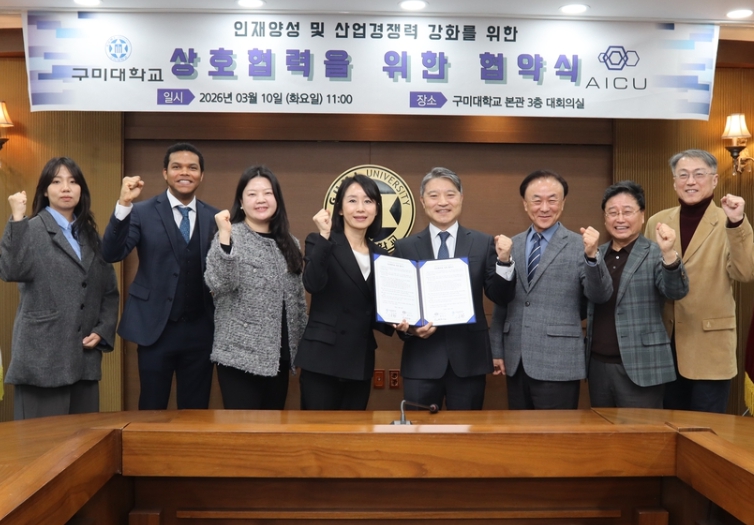 구미대학교(총장 이승환)는 AI 기반 질병 예측 솔루션을 개발한 헬스케어 기술기업인 ㈜에이아이씨유(AICU)와 대학 인재양성 및 지역 산업 경쟁력 제고를 위해 손을 맞잡았다.