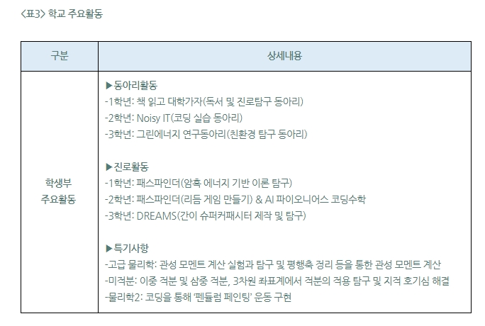 교과 세특 관리에 있어 김민준 학생은 과목 자체 역량에 집중하고, 어떤 과목을 진로와 연결할지 선별했다. “공학과 물리학 관련 진로를 희망한 만큼, 수학과 과학 과목을 진로와 엮고자 하였고, 국어, 영어, 한국사 등의 과목은 과목 자체 역량을 강조했습니다. 진로와 엮을 부분은 해당 교과 세특에 동기와 활동 과정을 순차적으로 기록하고, 왜 해당 분야에 진심인지, ‘지적 호기심’으로 해당 교과를 공부하면서 일어난 연쇄적인 궁금증과 해결 방법, 과정까지 보여주고자 했습니다.”