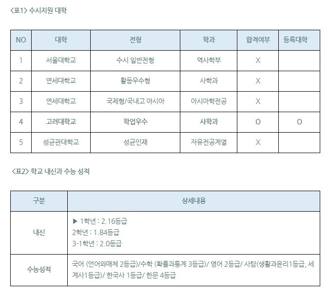 2026학년도 노원도봉 수시 합격생 : 박우현 학생 (고려대학교 사학과 진학/ 서라벌고 졸업)