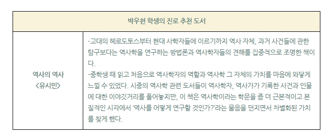 다양한 책을 섭렵하던 적성 살려 ‘역사학’ ‘서양사 탐구’ 전공으로 구체화!